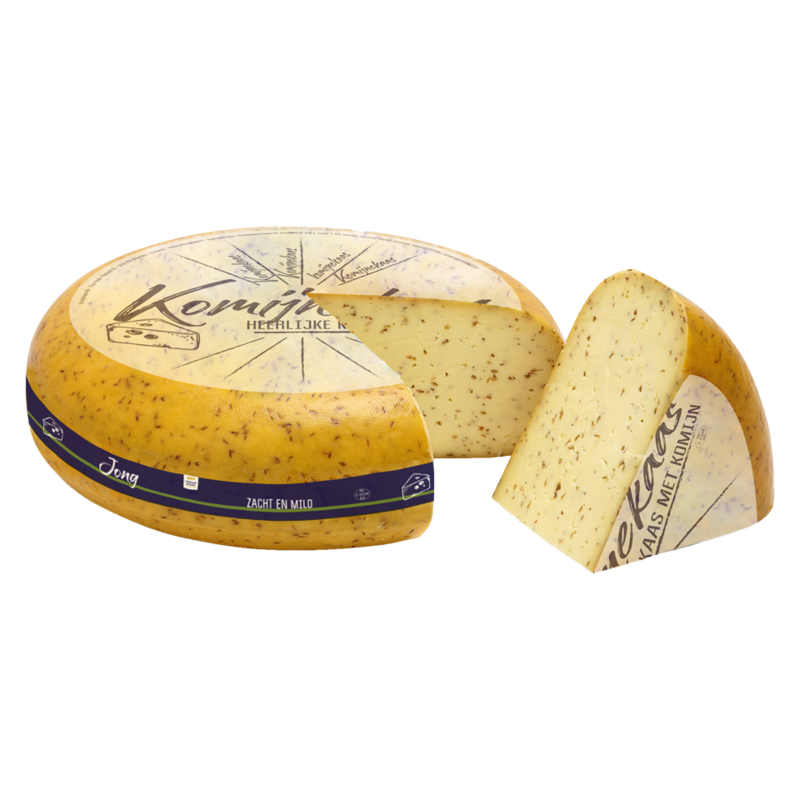Der junge Kreuzkümmel wird auf traditionelle Weise aus frischer holländischer Milch zubereitet. Dieser Käse reift seit 4 Wochen im Lager.