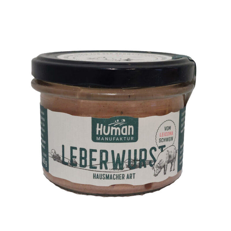 Cremige Leberwurst von Leicoma. Die Leberwurst ist cremig und wird im 160gr-Glas geliefert.