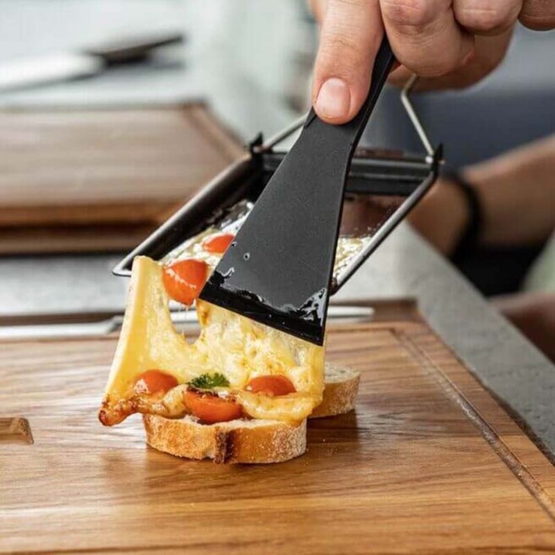 Tipp: Den Raclettekäse verwenden und anschließend schmelzen. Für mehr Geschmack gießen Sie den geschmolzenen Käse über verschiedene Gemüsesorten, Pizzen, Sandwiches oder Nachos.