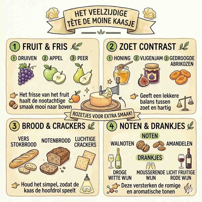 Die einzigartige Präsentation und der reichhaltige Geschmack machen Tête de Moine zu einer beliebten Wahl sowohl in einfachen als auch in raffinierten Gerichten.