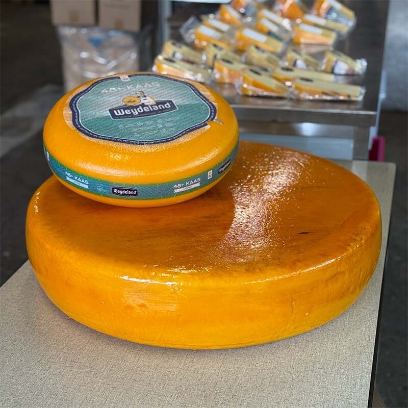 The Boeren Gigant XL is a 60 kg farmhouse cheese made from thermalized milk. Extra creamy, aged one year, rich in flavor with fine crystals. Perfect for cheeseboards, buffets, or hot dishes.