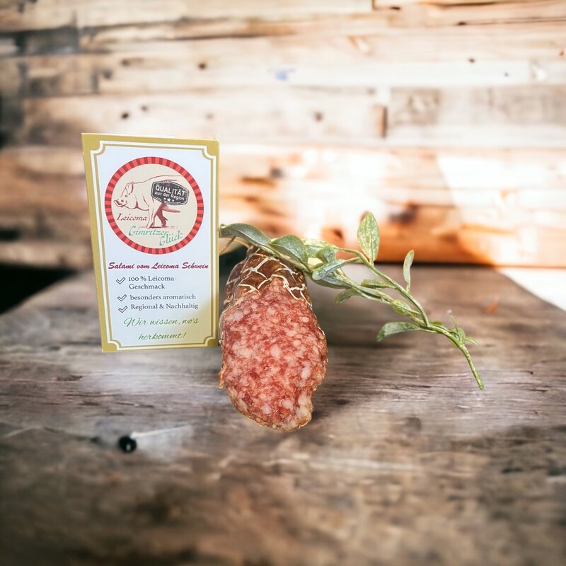 Delicious, full-bodied salami sausage from Leicoma. Available in a whole (approximately 270 grams) or half sausage.