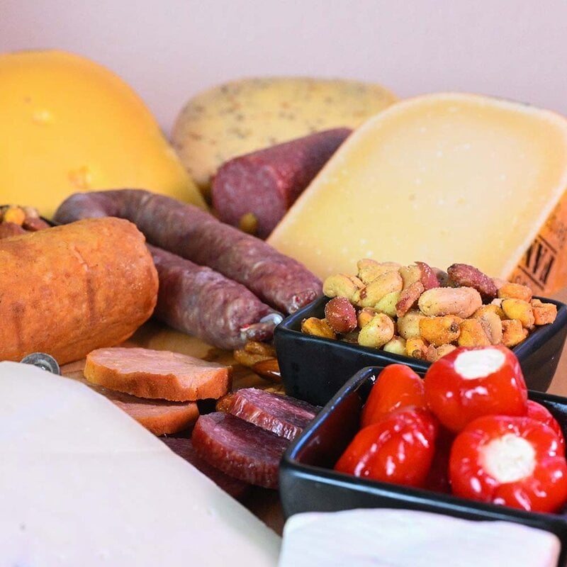 We ship this package uncut. The cheese is delivered in vacuum-packed pieces, with cheese paper to store the cheese in if necessary. The cold cuts are also delivered in vacuum-packed packaging. Store the products cool and dry. Let the cheese and sausage come to room temperature for an hour before consuming. This way the taste comes into its own best.