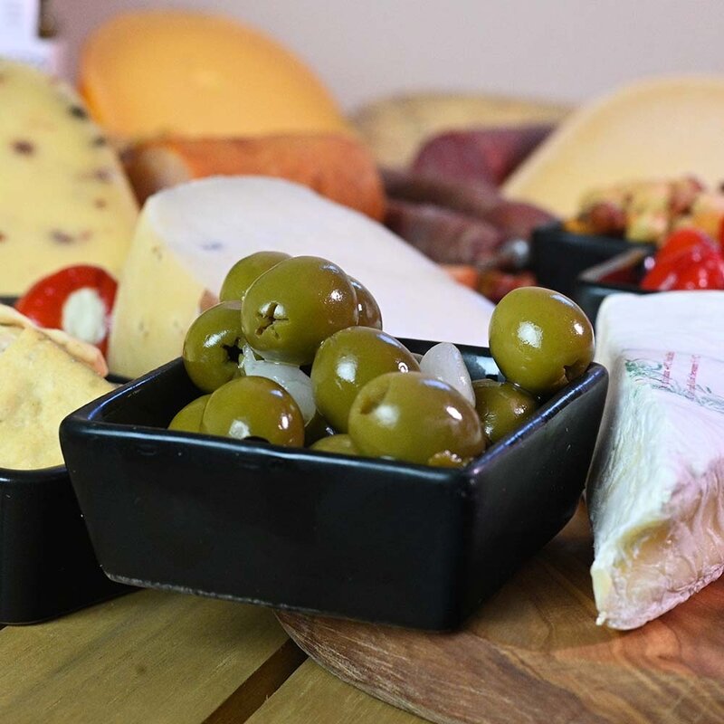 Container of Green Olives – Spicy, juicy olives for a fresh addition.