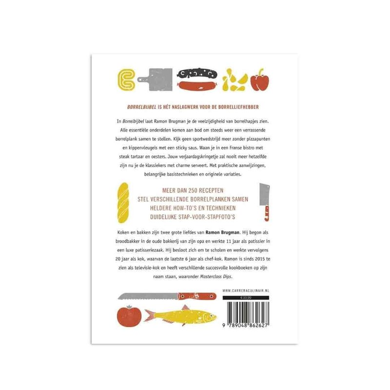 Lees meerIn De Borrelbijbel neemt Ramon Brugman je mee in de wereld van borrelhapjes en drankjes. Dit uitgebreide boek staat boordevol inspiratie en biedt meer dan 250 recepten, variërend van klassieke snacks tot verrassende, moderne twists. Dankzij de heldere instructies en duidelijke stap-voor-stapfoto’s wordt het bereiden van de lekkerste borrelhapjes eenvoudig en leuk. Of je nu zelf chips wilt maken, een indrukwekkende kaasplank wilt samenstellen of cocktails wilt mixen als een professional, dit boek geeft je alle handvatten die je nodig hebt.