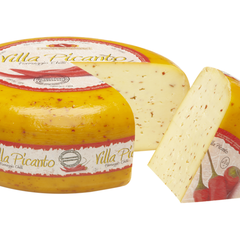 Villa Picanto is een premium jonge boerenkaas, gemaakt van verse melk en verrijkt met chilipepers voor een extra smaakdimensie. De kaas heeft een milde tot medium pittigheid, afhankelijk van de hoeveelheid chilipeper, en biedt een heerlijke balans tussen romigheid en scherpte. Door de acht weken rijping krijgt de kaas een rijke, volle smaak die het geheel perfect in harmonie brengt.